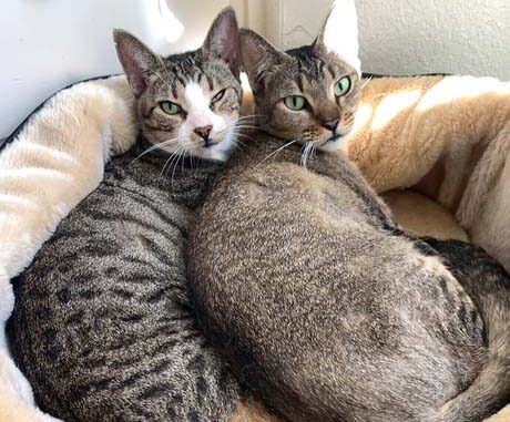 Two of the sweetest cats are waiting for a forever home. These bonded sisters, Casey (white on face) and Holly are special… special needs cats with CH – Cerebellar Hyperplasia. These ‘wobblies’ survived a situation of neglect and persevered with strength and gratitude to be able to give unconditional love and joy. Both are litter box trained, wobble around, eat on their own and love to play. They cannot climb on furniture or counters so there is no scratching. Casey and Holly are lap cats, purr endlessly, love to be pet and given affection and, in return, ask for nothing but love and support. Watch these two cuties here!