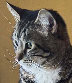 If you are looking for a sweet loving lap cat, Tiki is your girl! A wee bit rubenesque, with the cutest long whiskers, she is brimming with gentle affection. This adorable two year old cat is not at all shy and really wants to be your friend. She is also quite alert, curious and playful. When not on your lap or sitting next to you, she is happy to chase toys or fly catch or look out the window. Tiki looks forward to finding her own special home with you soon!